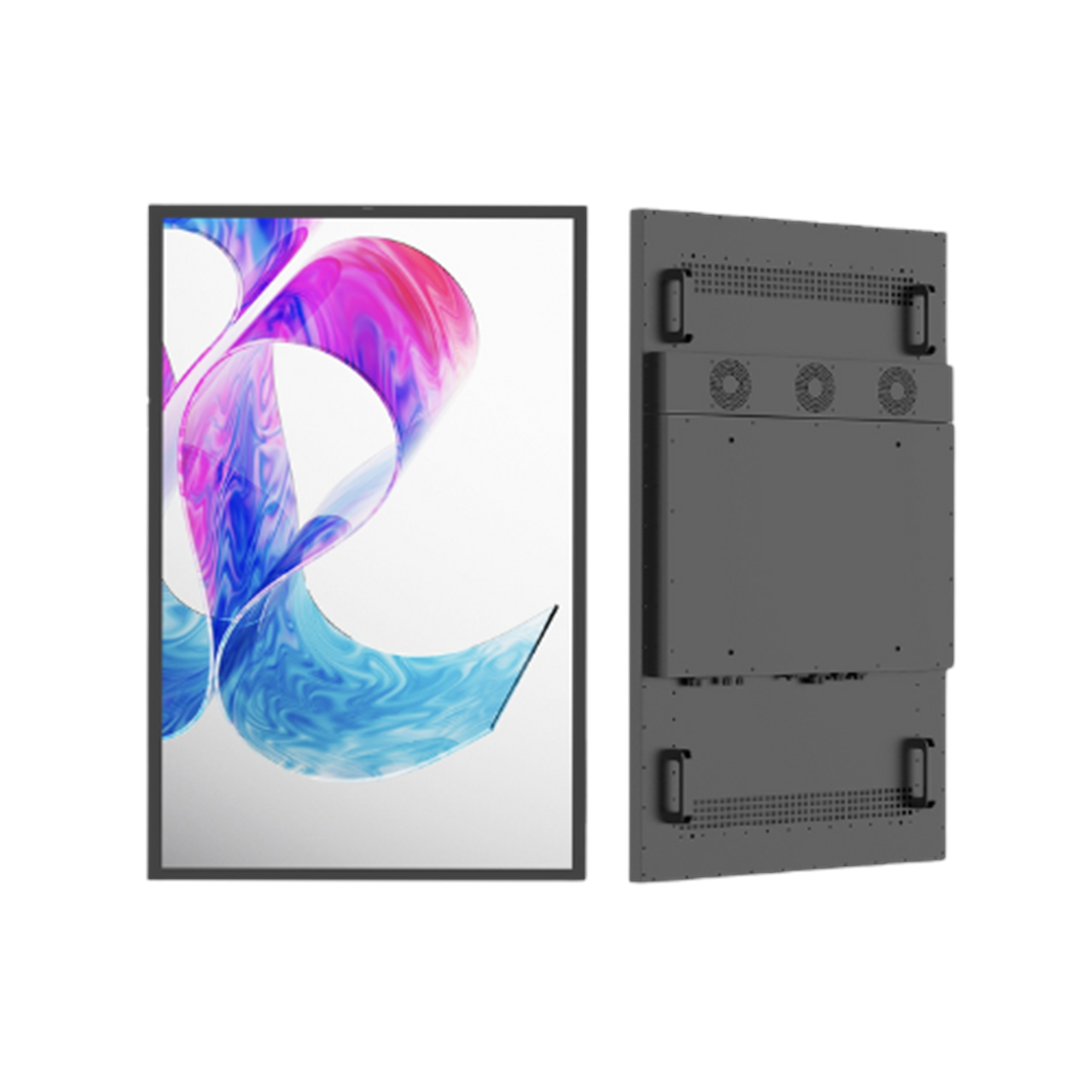 Wall-mounted or free standing 65" landscape or portrait full outdoor digital display.