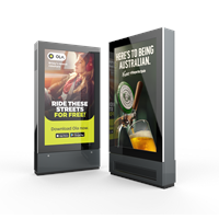 Wall-mounted or free standing 65" landscape or portrait full outdoor digital display.