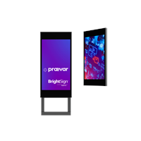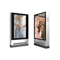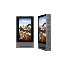 Wall-mounted or free standing 75" landscape or portrait full outdoor digital display.