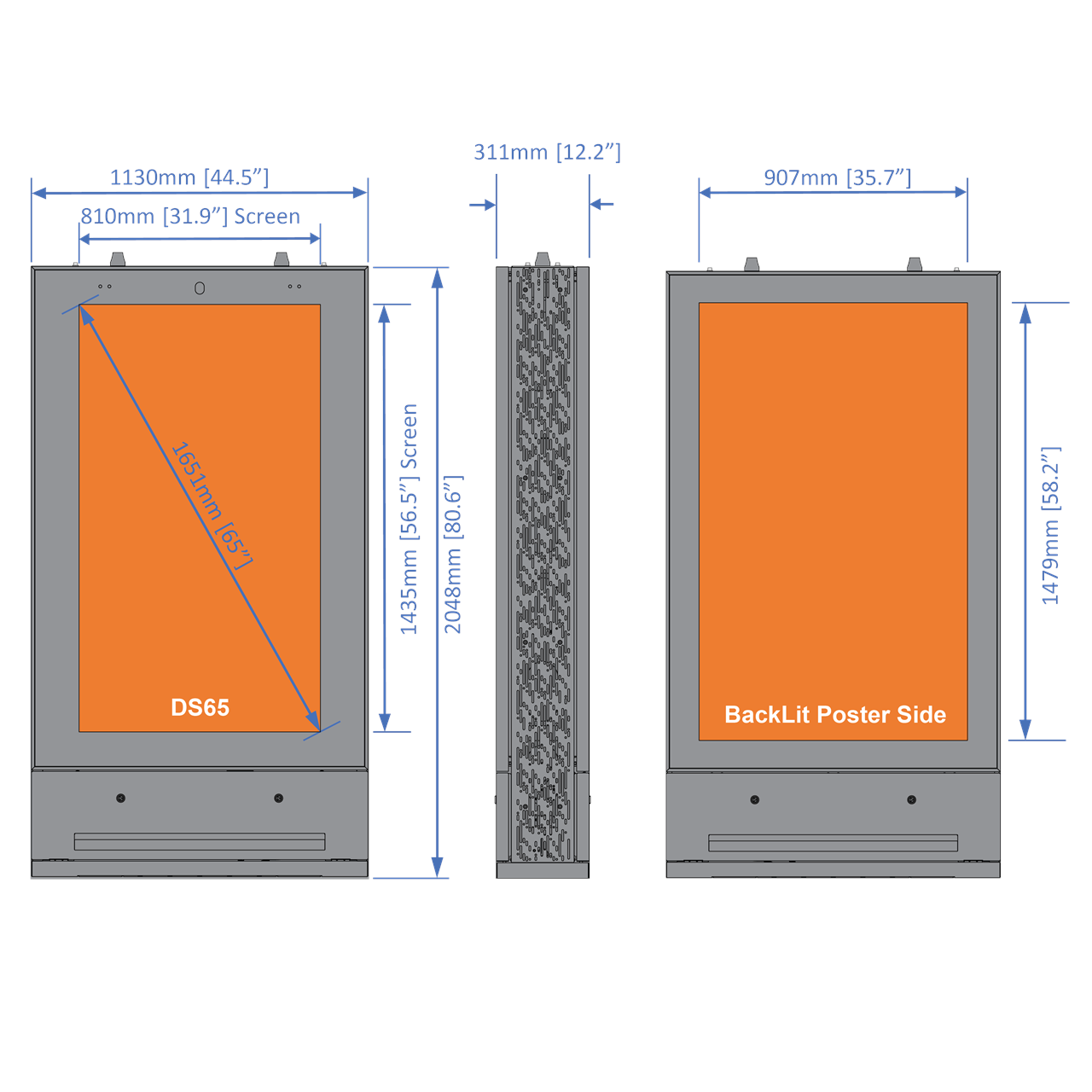 65" Free-standing High-Brightness 4000 Nits Low-Power LCM Outdoor Display System – Consuming 35% Less Power Than Traditional High-Brightness Displays