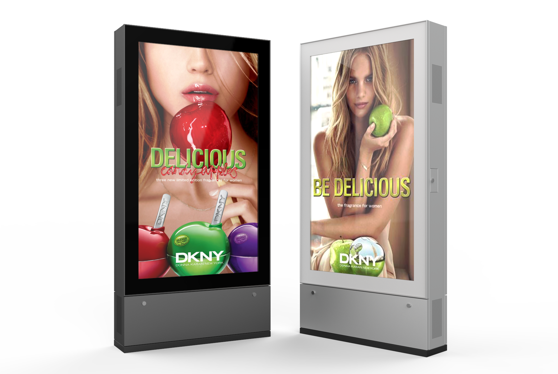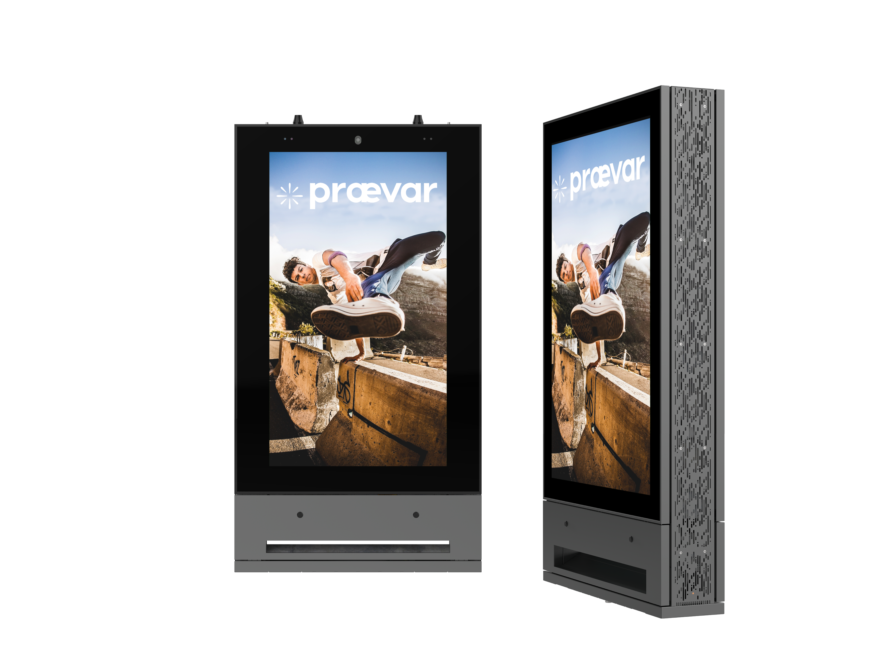 The Praevar Podium Portrait digital display available as single or dual screen for free-standing installation or street furniture integration.